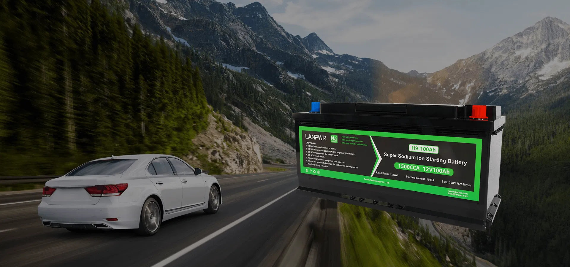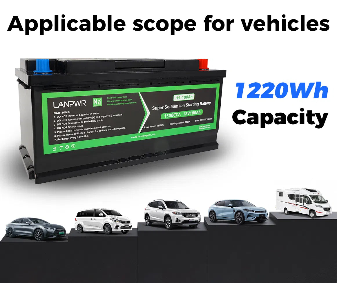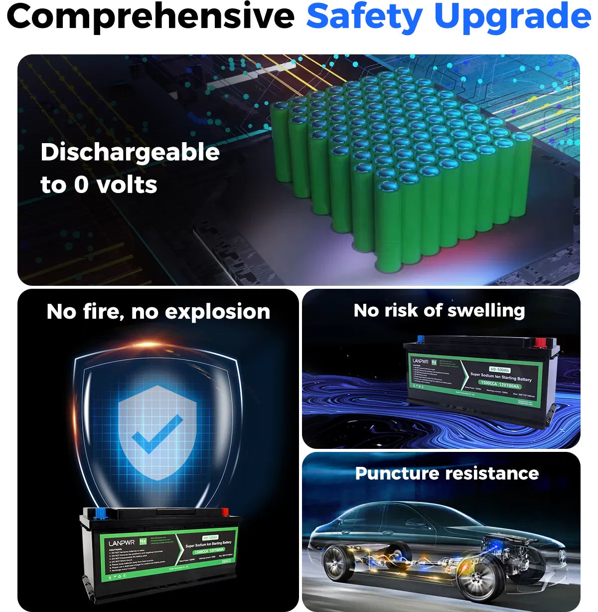 LANPWR 12 V 100 Ah 1500 CCA Auto-Batterie Natrium-Ionen-Starterbatterie mit Bluetooth