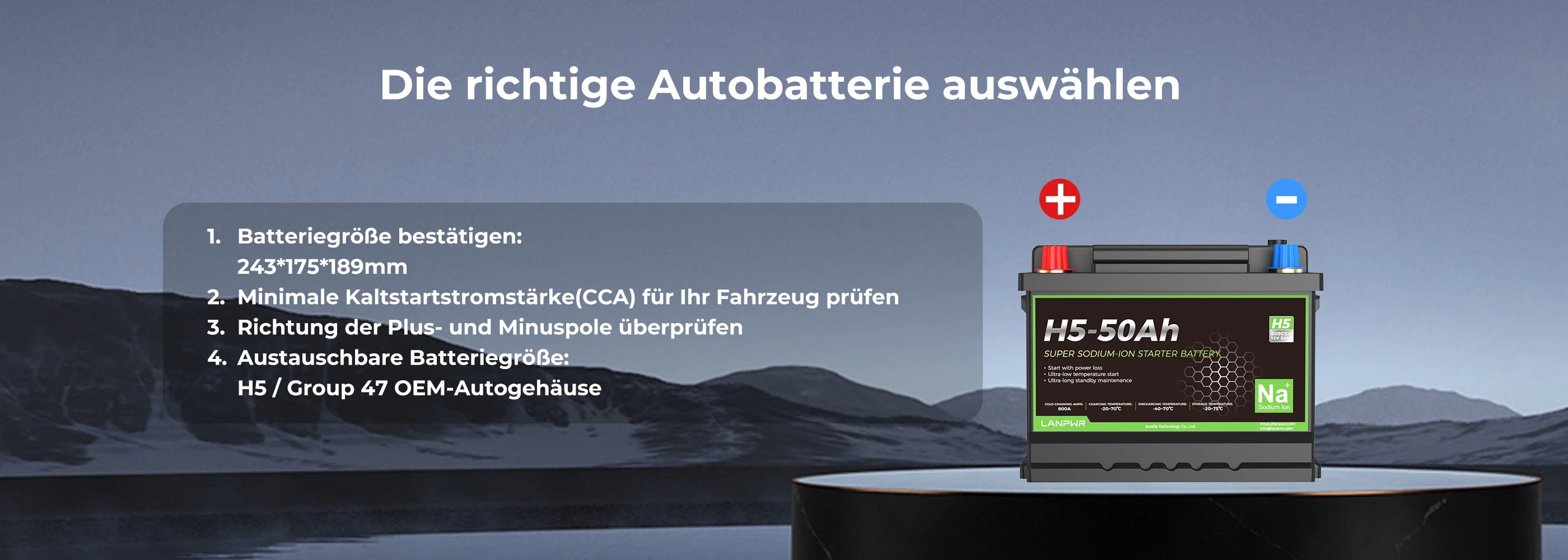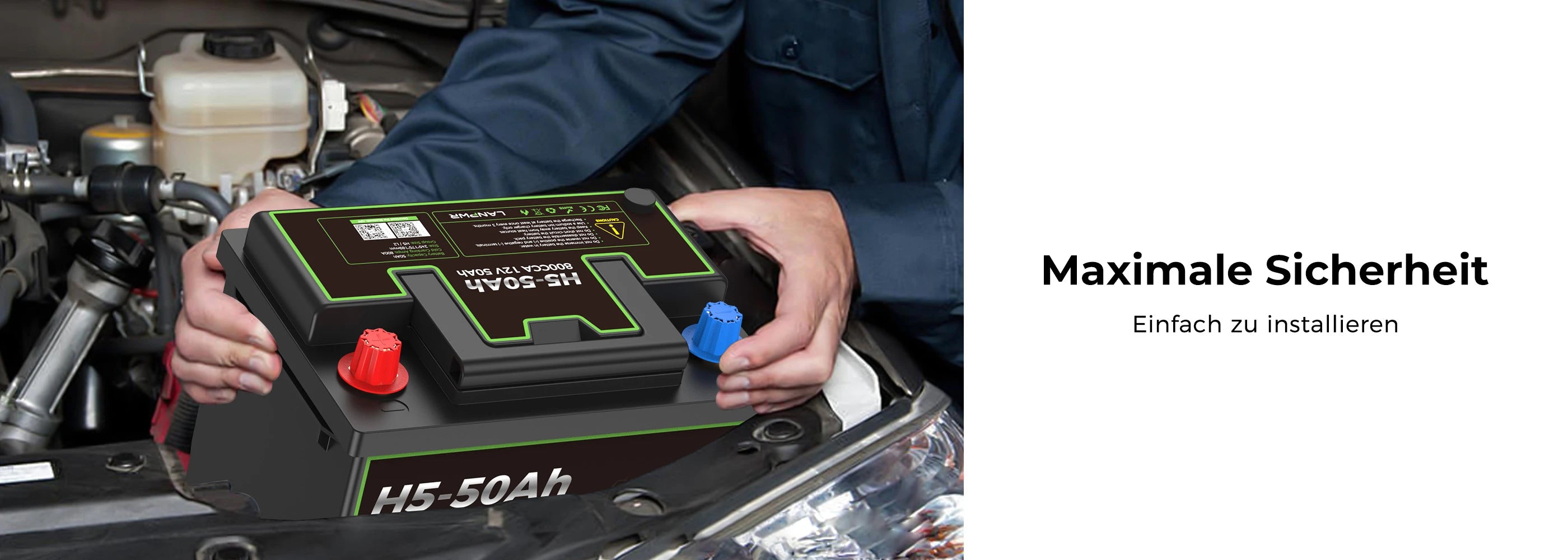 LANPWR 12 V 50 Ah 800 CCA Auto-Batterie Natrium-Ionen-Starterbatterie mit Bluetooth