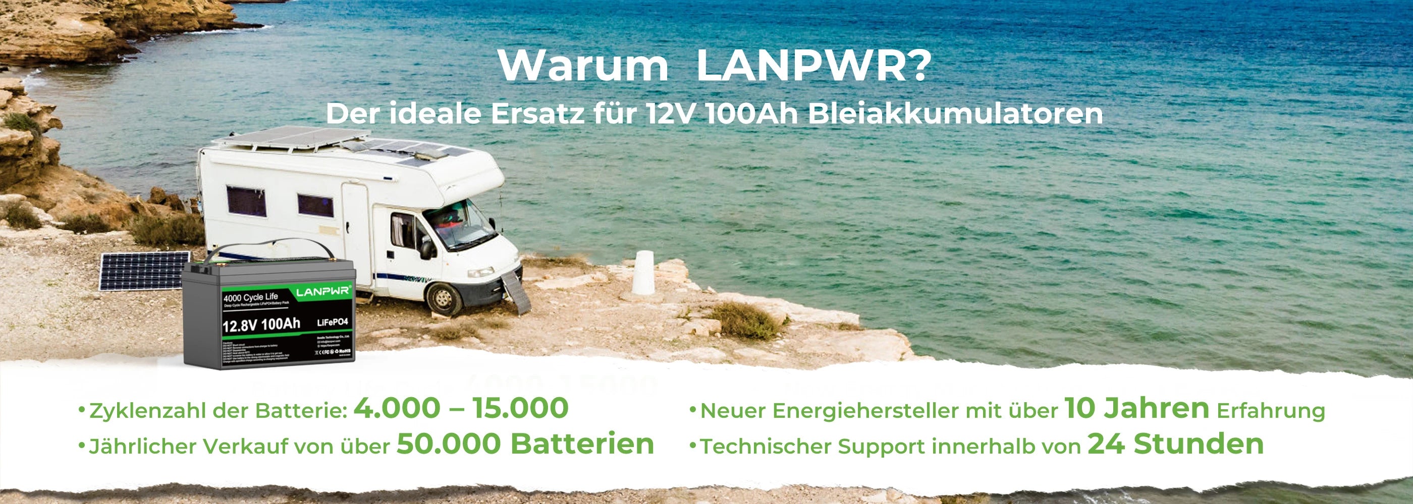 LANPWR 12V 100Ah LiFePO4 Batterie – Tiefentladung, hohe Leistung, langlebig