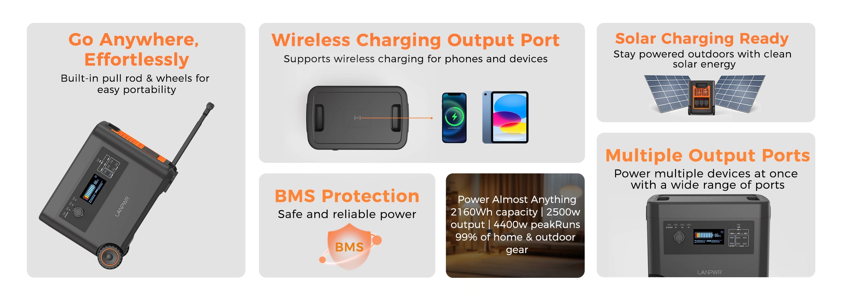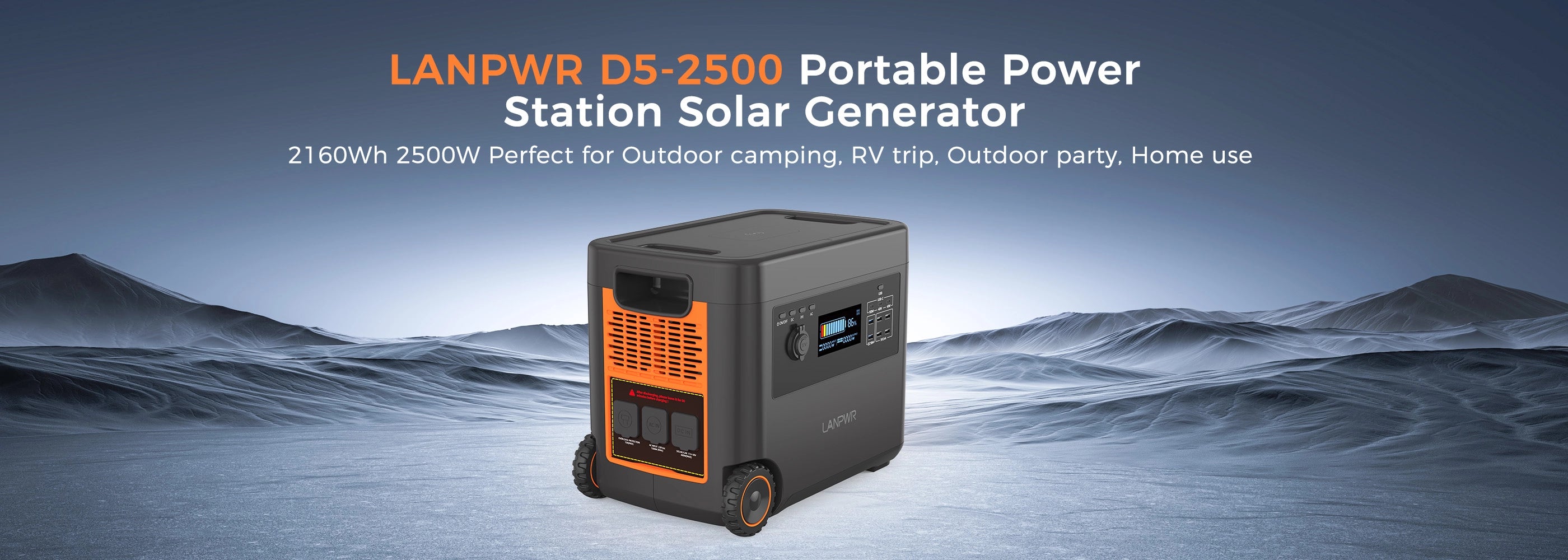 LANPWR D5-2500 Tragbare Powerstation mit Solargenerator, 2160 Wh, 2500 W – Ideal für Camping, Wohnmobilreisen, Gartenpartys und den Heimgebrauch
