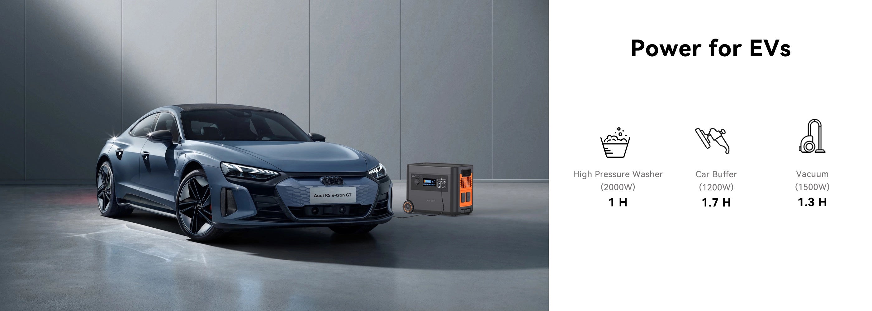 • Maximale Dauerleistung von bis zu 2500W, um 99% der Haushaltsgeräte zu betreiben. Versorgen Sie gleichzeitig bis zu 12 Geräte, einschließlich 2 AC-Steckdosen.