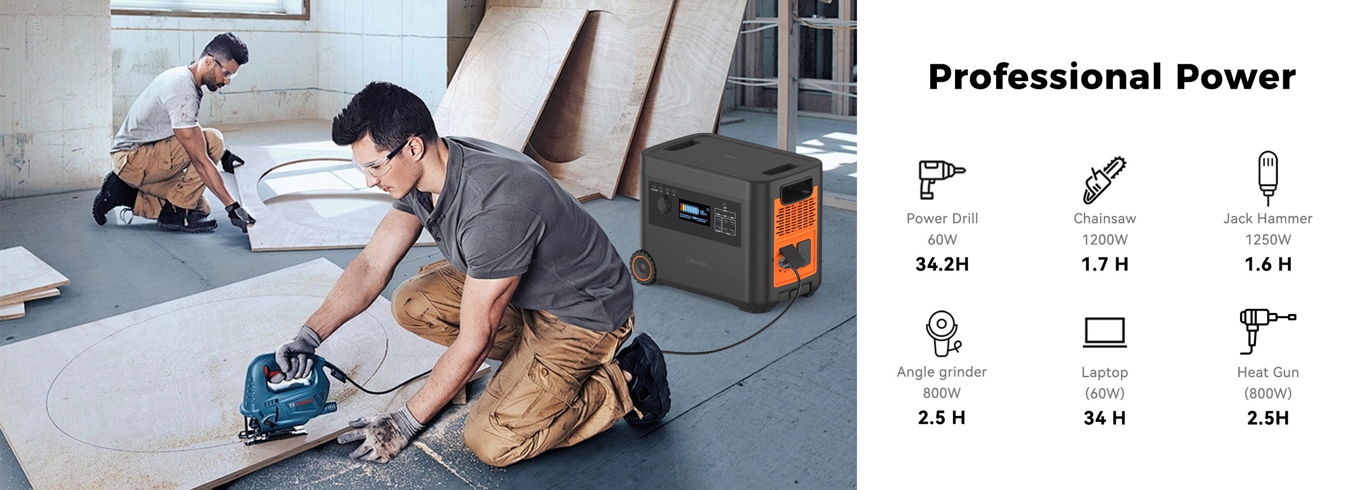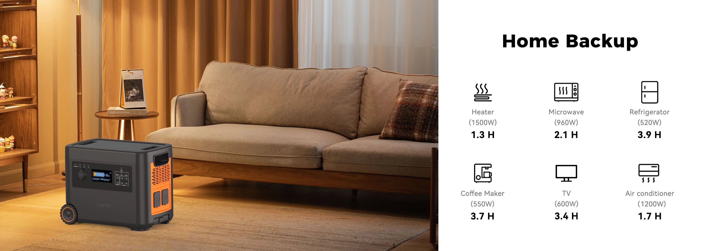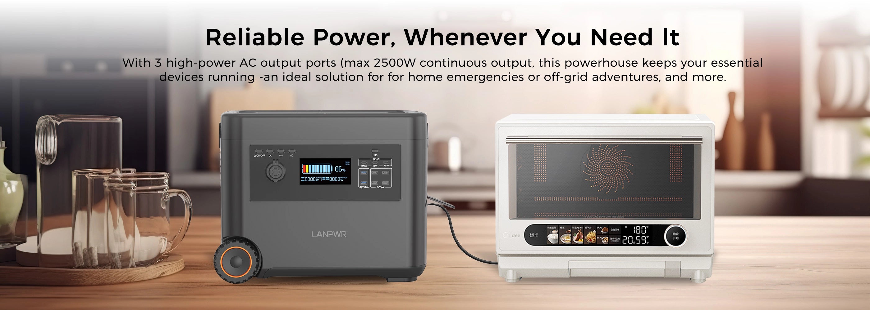 Der LANPWR D5-2500 liefert eine kontinuierliche AC-Leistung von 2500 W (Spitzenleistung bis 4400 W) und ist ideal, um wichtige Geräte unabhängig vom Stromnetz zu betreiben. Ob Kaffeemaschinen, Mikrowellen, Elektrowerkzeuge oder medizinische Geräte – diese Powerstation sorgt für zuverlässige Leistung. Mit 11 Ausgängen können mehrere Geräte gleichzeitig betrieben werden, perfekt für Off-Grid-Einsätze, Camping, Wohnmobile oder Notstromsituationen. Ob im Freien oder für den Notfall – der D5-2500 liefert stabile und effiziente Energie genau dann, wenn sie am wichtigsten ist.